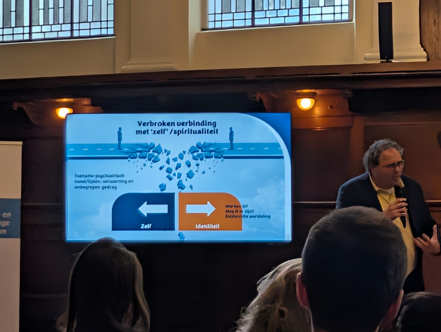 De laatste spreker, Martijn Kole, biedt een diep persoonlijk en filosofisch perspectief op herstel. Hij worstelt met het concept ‘cliëntperspectief’, omdat het mensen apart zet.
