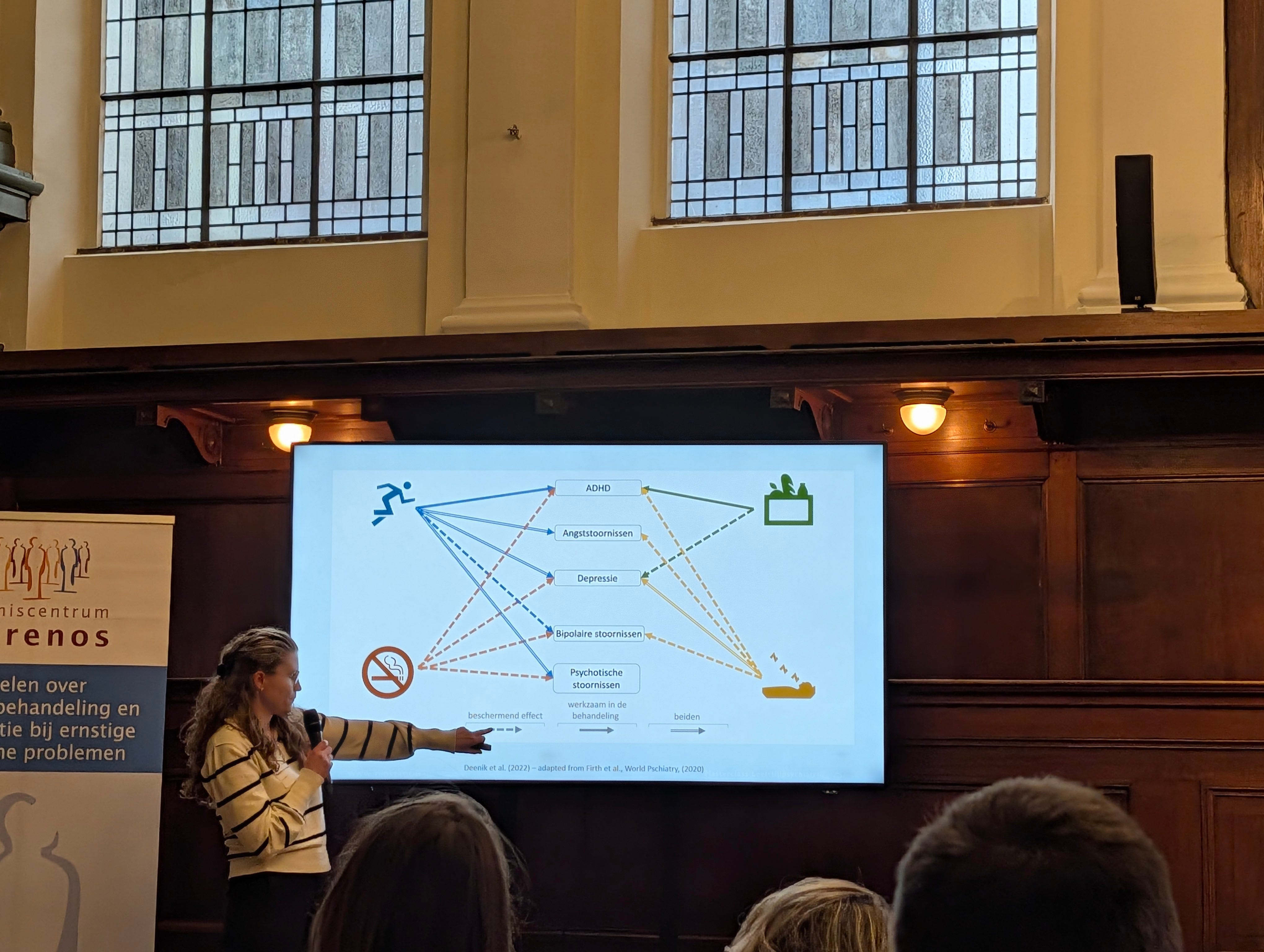 De volgende spreker presenteert de resultaten van het project “Leefstijl Actief”. Mensen met een ernstige psychische aandoening hebben een significant kortere levensverwachting (tot wel 15 jaar), veelal door lichamelijke aandoeningen die gerelateerd zijn aan een ongezonde leefstijl. Aandacht voor leefstijl kan niet alleen deze lichamelijke aandoeningen voorkomen, maar ook een direct behandeleffect hebben op psychische klachten.